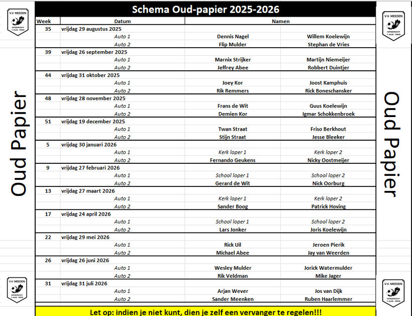 Schema Oud Papier 2025-2026